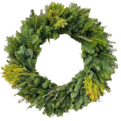 Our Balsam Fir wreaths are a holiday classic, crafted from fresh, fragrant balsam branches that fill the air with the signature scent of the season. Featuring rich green needles and a traditional, full-bodied shape, these wreaths bring timeless charm to any doorway, mantle, or display. Available in a variety of sizes, each wreath is made with care to ensure freshness, fullness, and lasting beauty. A customer favorite year after year, Balsam wreaths are perfect for adding festive warmth to homes and businesses alike.